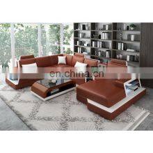 Living Room Furniture Sets European Style Corner Sofas Sectional Led Light Genuine Leather Sofa Set Designs Modern