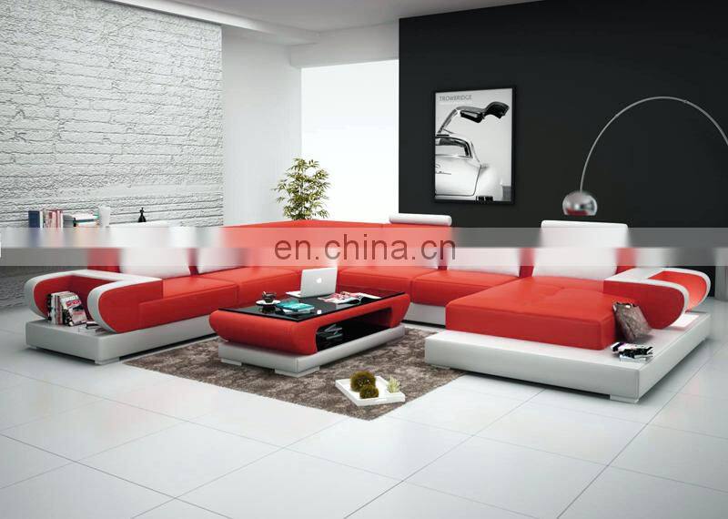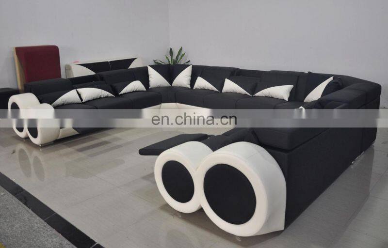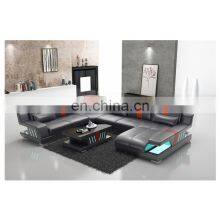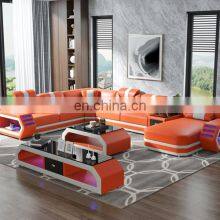Hot-Selling Genuine Leather Sofa U Shape Sofas Sectionals Different Colors Living Room Furniture Set With LED Light