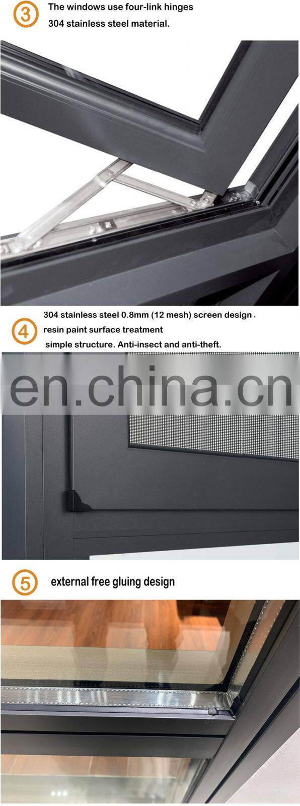 Aluminum Glass Windows Awning Window Thermal Break Double Glass Window