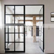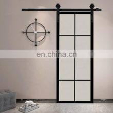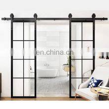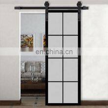 New Design Custom Black Metal Frame Glass Sliding Barn Door Wholesale