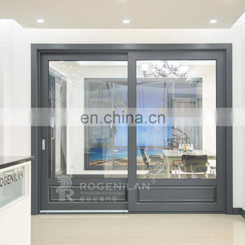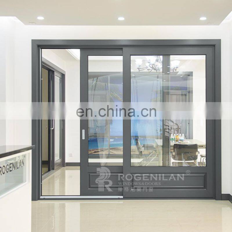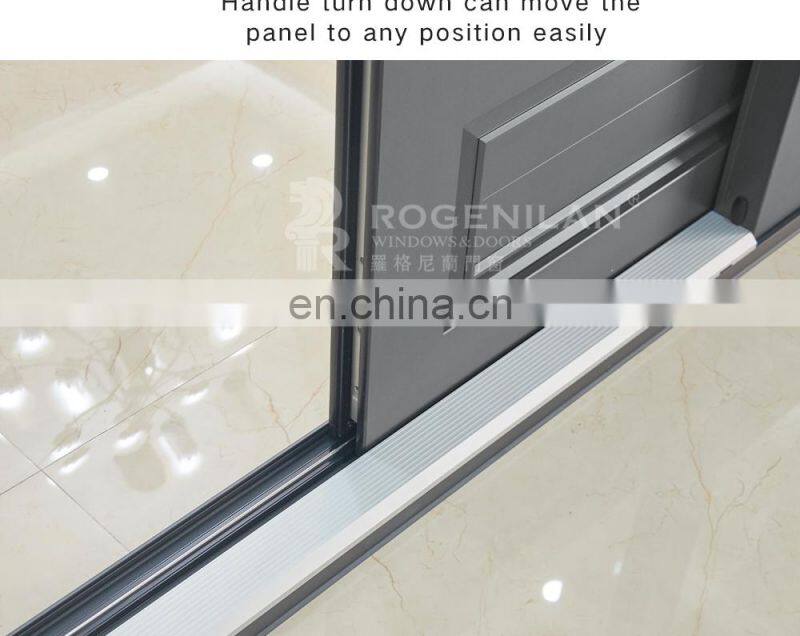 ROGENILAN aluminum sliding doors can be started or moved at any time and the room to keep The overall transparency of the interior space; the material of the sliding door has a certain sound absorption capacity, so the sliding door has a good sound insulation.We are happy to make custom sliding doors according to your projects.