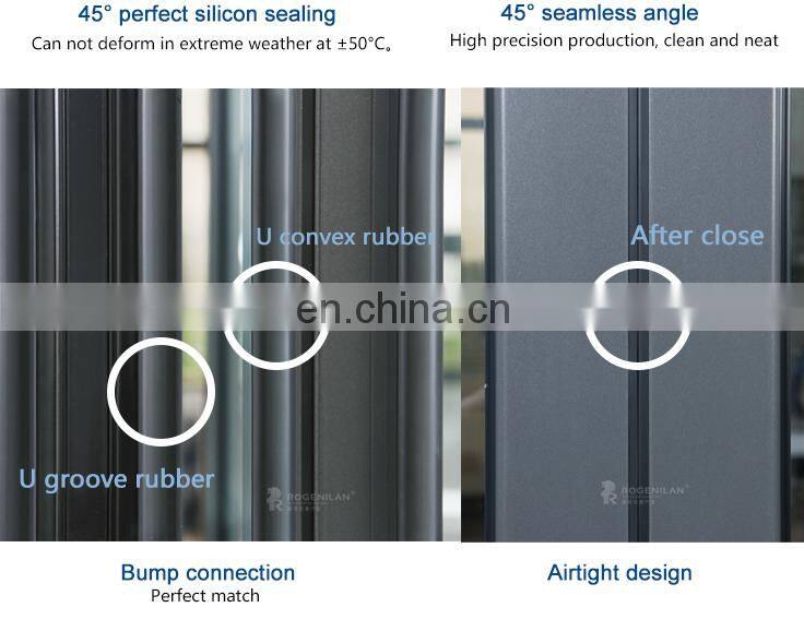ROGENILAN aluminum folding doors are mostly made of lighter new materials, which are insulated, insulated, moisture-proof, fire-retardant, noise-reducing and noise-proof. It has good performance in acid and alkali resistance and corrosion resistance. .We are happy to make custom folding doors according to your projects.