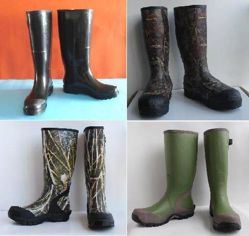 We use natural non-toxic rubber to manufacture these products and the manufacturing process is more complicated. They are manufactured by hand made entirely. The features are: they have good flexibility and strong wearability; it is very comfortable to wear and they are 100% waterproof. The patterns on the surface, the colors and the height of the boots can be changed according to the requirements. Besides, we can change the surface of boots to be bright, semigloss, matt and light extinction. These products are widely used in various fields, such as family agriculture, fishing, mining, etc. It is an ideal and practical protective product.
