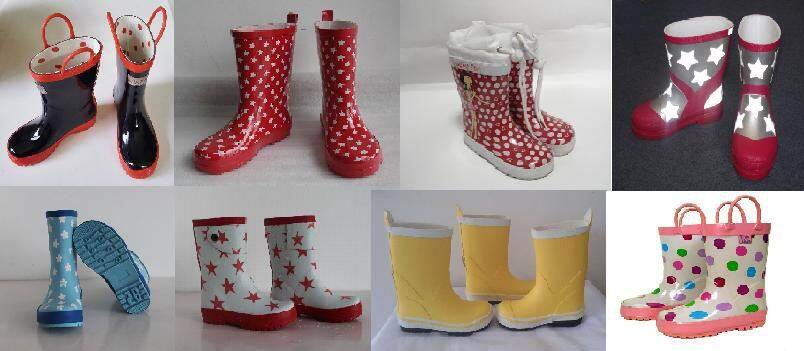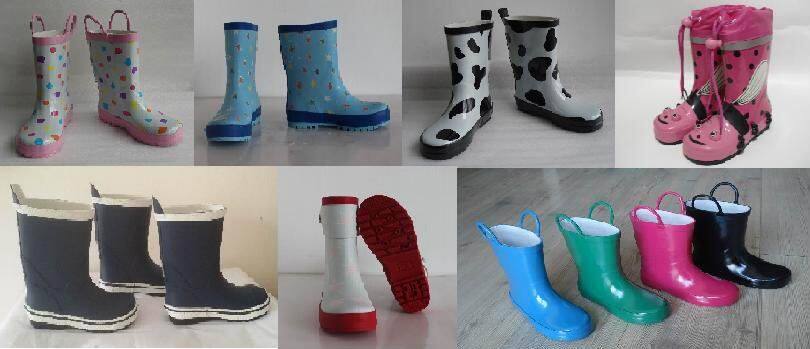3、Rubber boots for kids: Generally the sizes are 22-35 (the USA sizes are 5-14 and 1-4), the weight of the boots is about 0.4KGS to 0.6KGS/pair. The colors on the surface and the logo can be manufactured according to your requirements. Package: one pair of boots in one polybag; 20 to 30 pairs of boots in one outside carton. Of course, we also can package them according to your requirements. The price is confirmed according to your actual products and manufacturing requirements. Our MOQ is 1500 pairs each style (they must be same styles, but can be different sizes).
