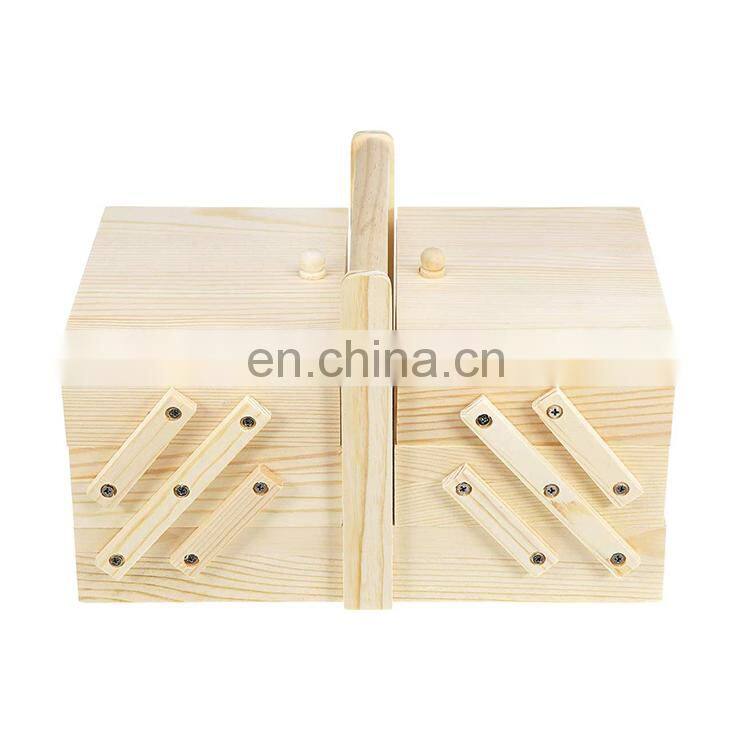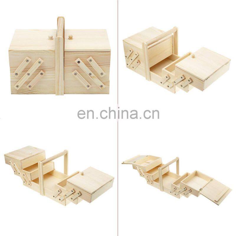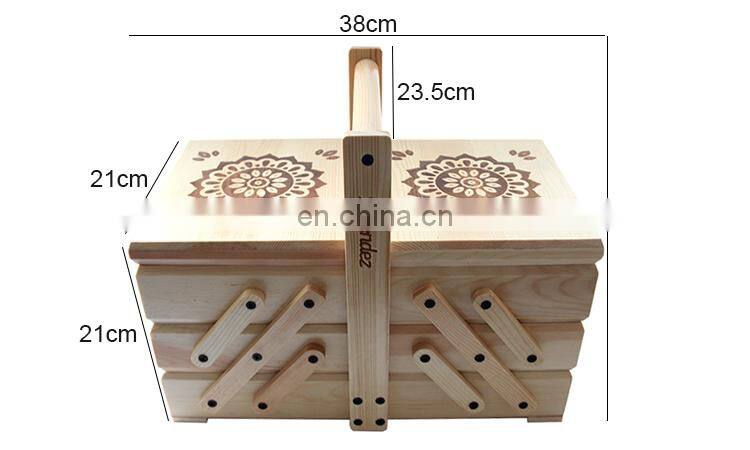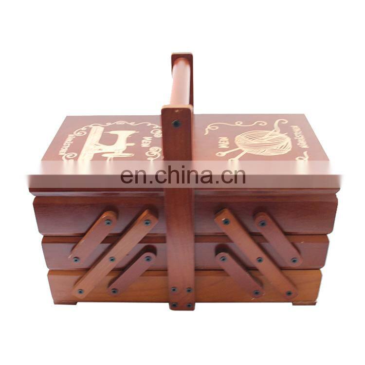 Home > Products > 03 wooden packaging box > Nice Quality Folding Wooden Sewing Box With Handle