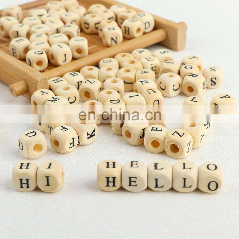 - 10mm 12mm Wooden Square Cube Alphabet Letters Beads for Personalized Baby Education
