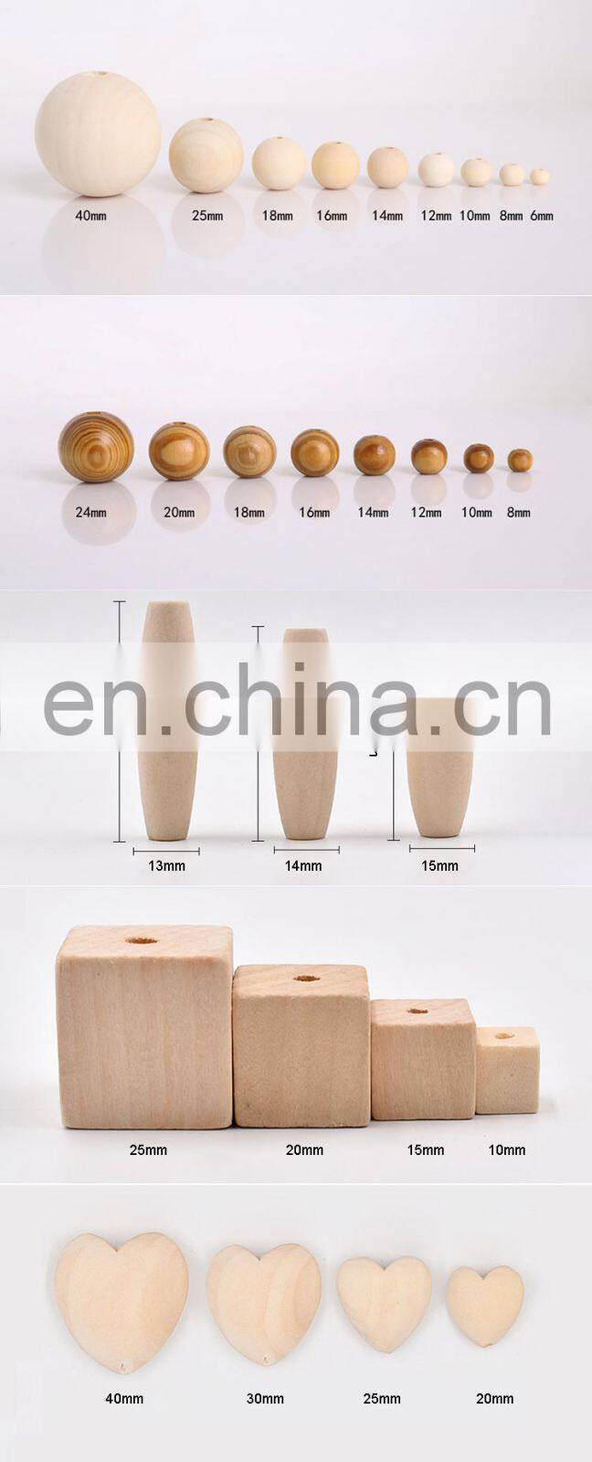 - 4-40mm Natural Color Round Wooden Beads for DIY Decoration Gift Making