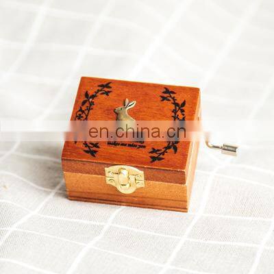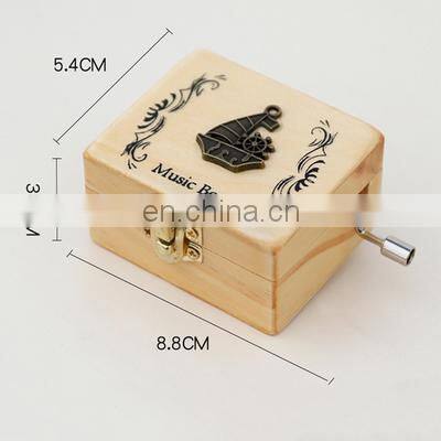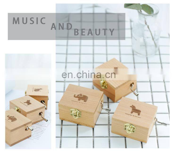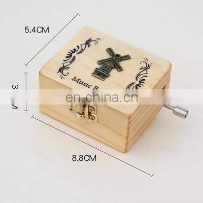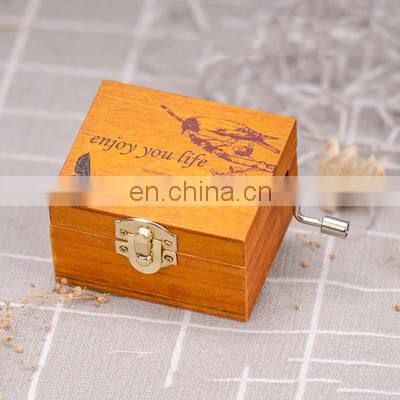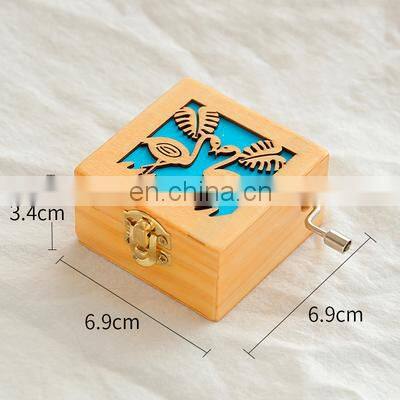 Laser Engraved Diy Wooden Music Box ,hand-cranked Mini Music Box for Anniversary
