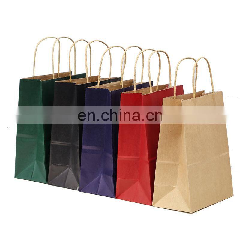 Custom Printed Your Own Logo Cardboard Packaging White Brown Kraft Gift Craft Shopping Paper Bag With Handles