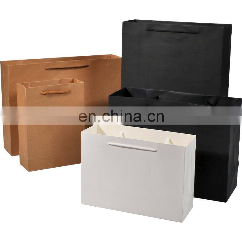 Printed Your Own Logo Packaging White Brown Kraft Gift Craft Shopping Paper Bag With Ribbon Handles