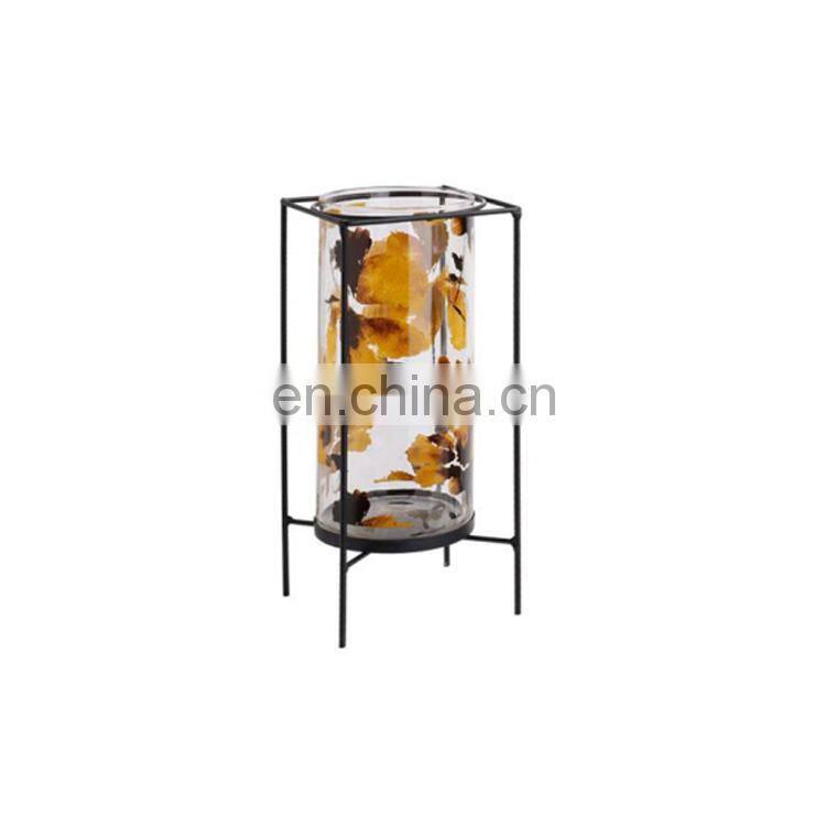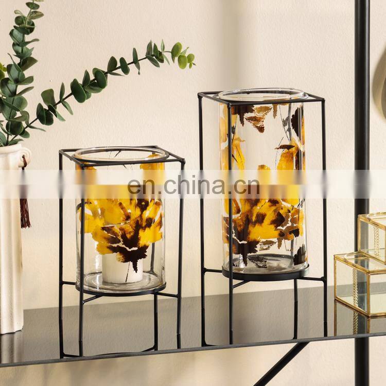 Home > Products > Candle Holder > K&B Decorative Color Glass Candle Holders Metal Frame Tall Glass Candle Holder