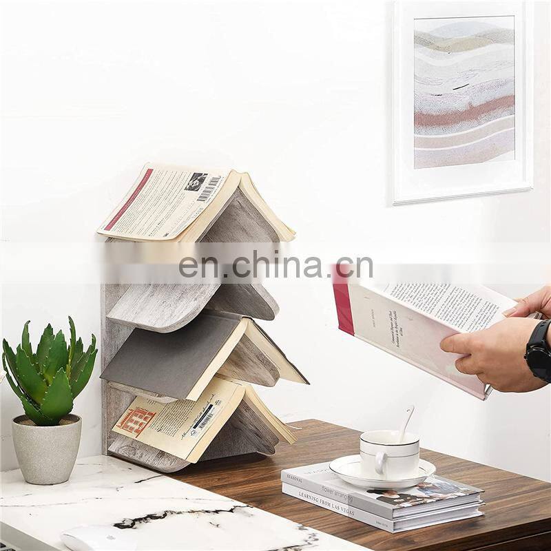 Wooden Tree Shape Bookshelf Bookcase Book Holder for Living Room Office