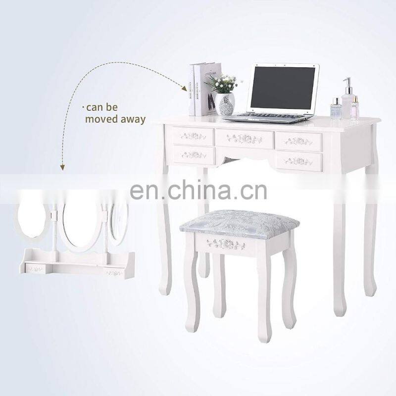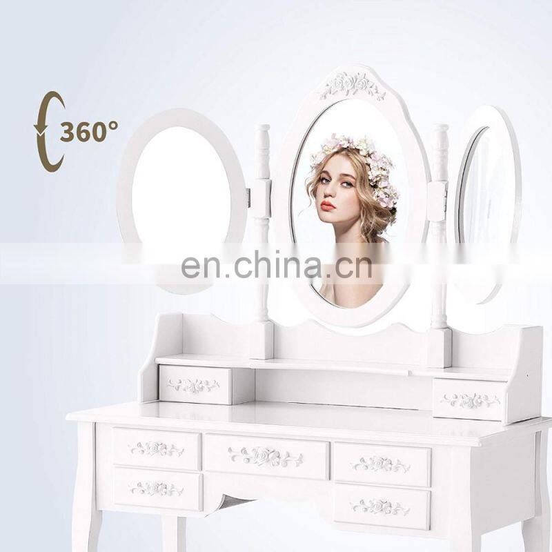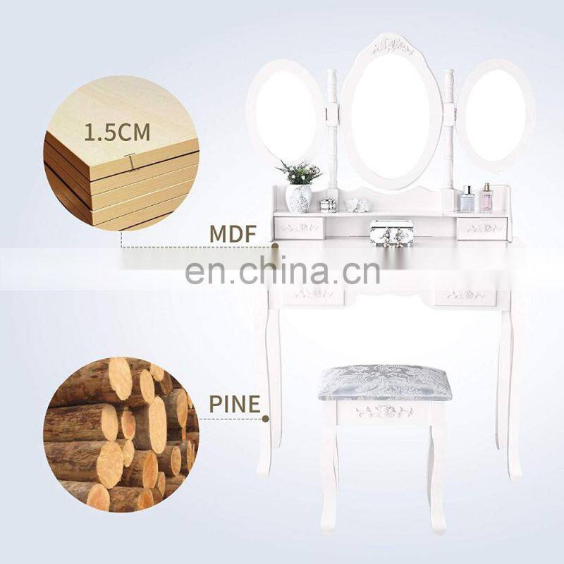 3 Mirror 7 Drawer White Dressing Tables With Mirror and Stool