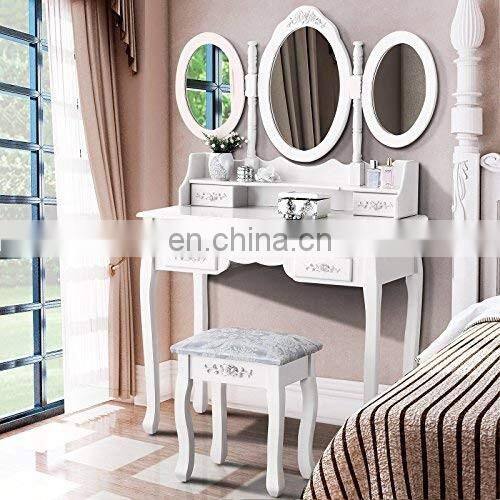Modern Furniture Wood 4 Drawers Make-Up Vanity Table Mirror Make up Table