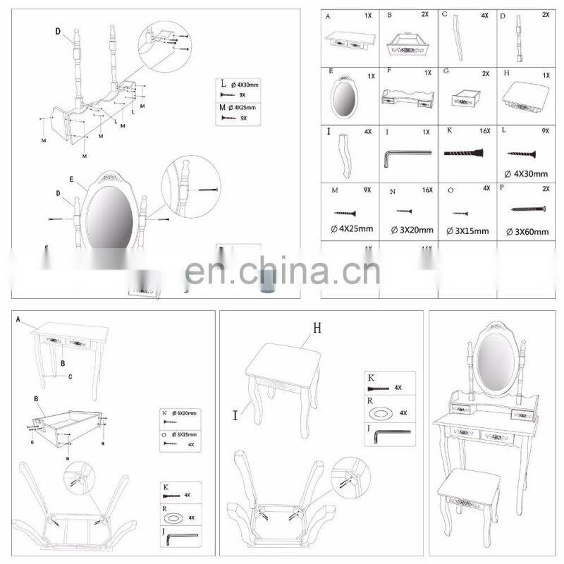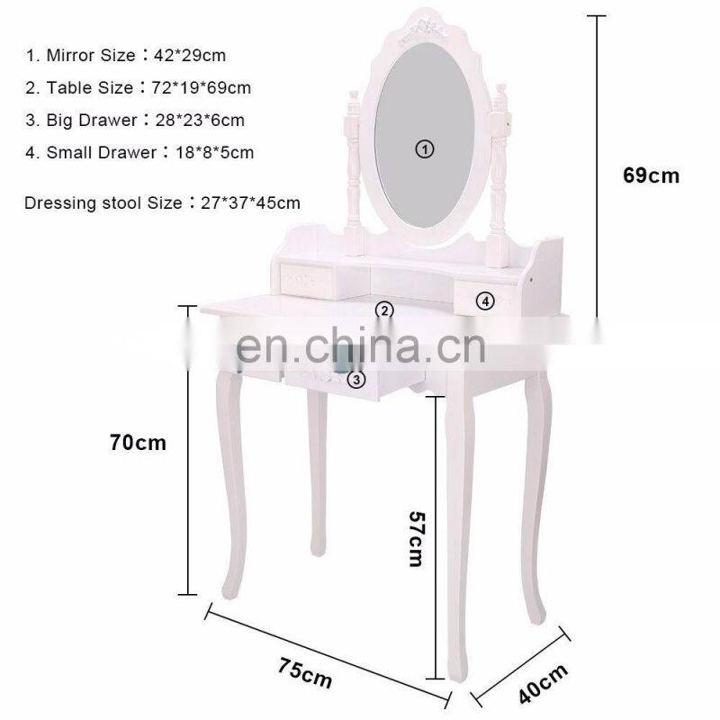 White Dressing Table Vanity Makeup Desk With 4 Drawers, Mirror Set and Stool