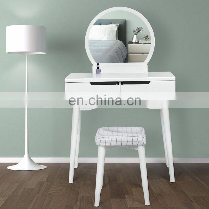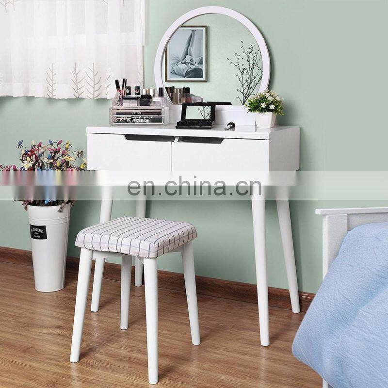 Modern Design Cheap White Simple Wooden Makeup Mirrored Dressing Table With Mirror And Drawers