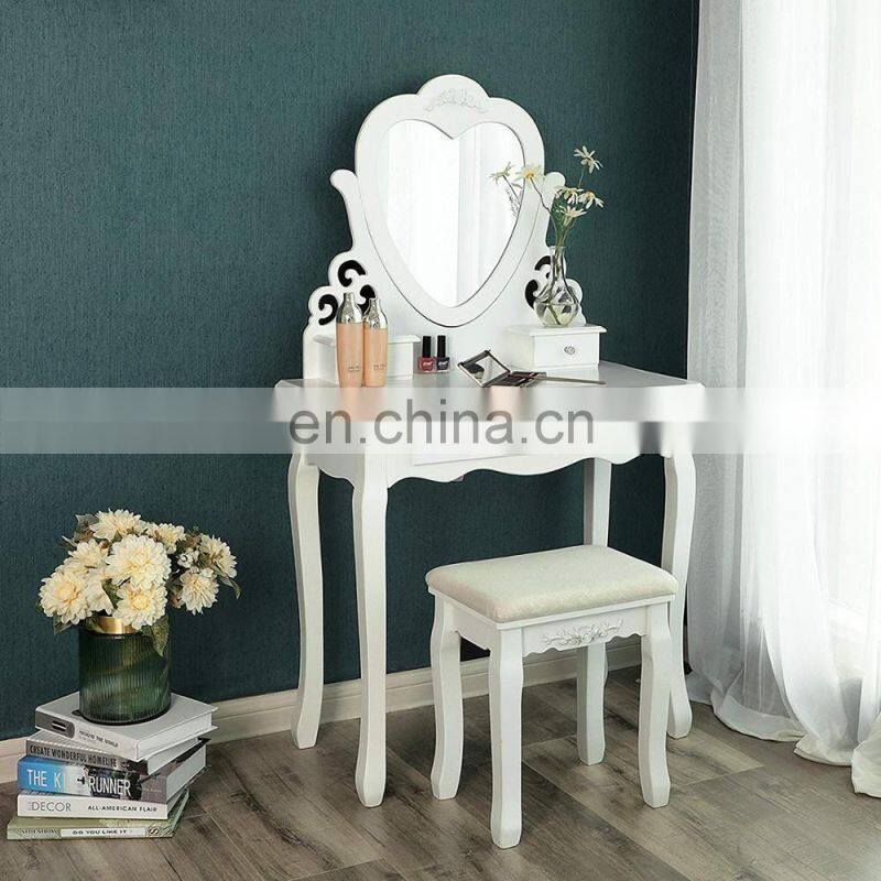 Dressing Table Set With Stool and Heart Shape Mirror Vanity Furniture Bedroom White
