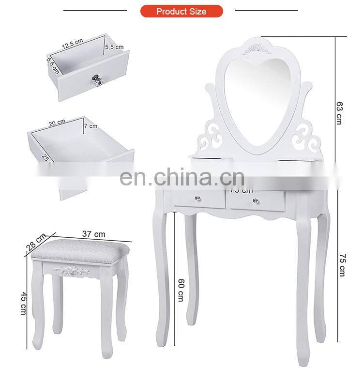 Dressing Table Set with Stool and Heart shape Mirror Makeup Desk 4 Drawers Vanity Furniture bedroom White