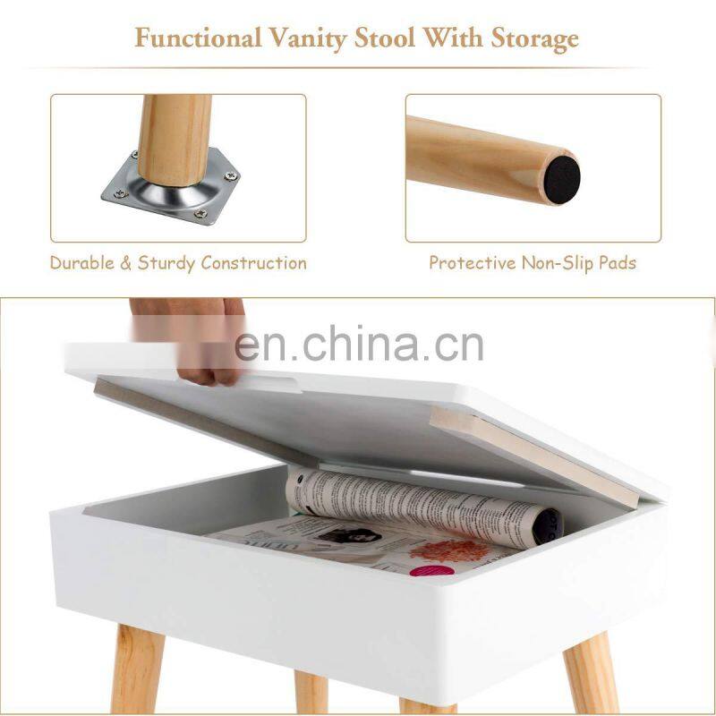 * Multipurpose Stool with Storage Space: Open the cover of the stool, you will find there is additional storage space for you to place small items. At the bottom of the leg, there is a pad to prevent slipping and scratching of the floor. And the stool also can be used separately as an ottoman, desk chair and so on.