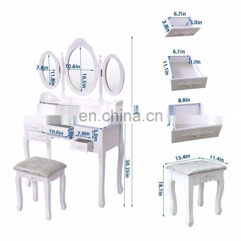 Wooden Dresser Makeup Set with 7 drawers , 3 mirrors , bedroom
