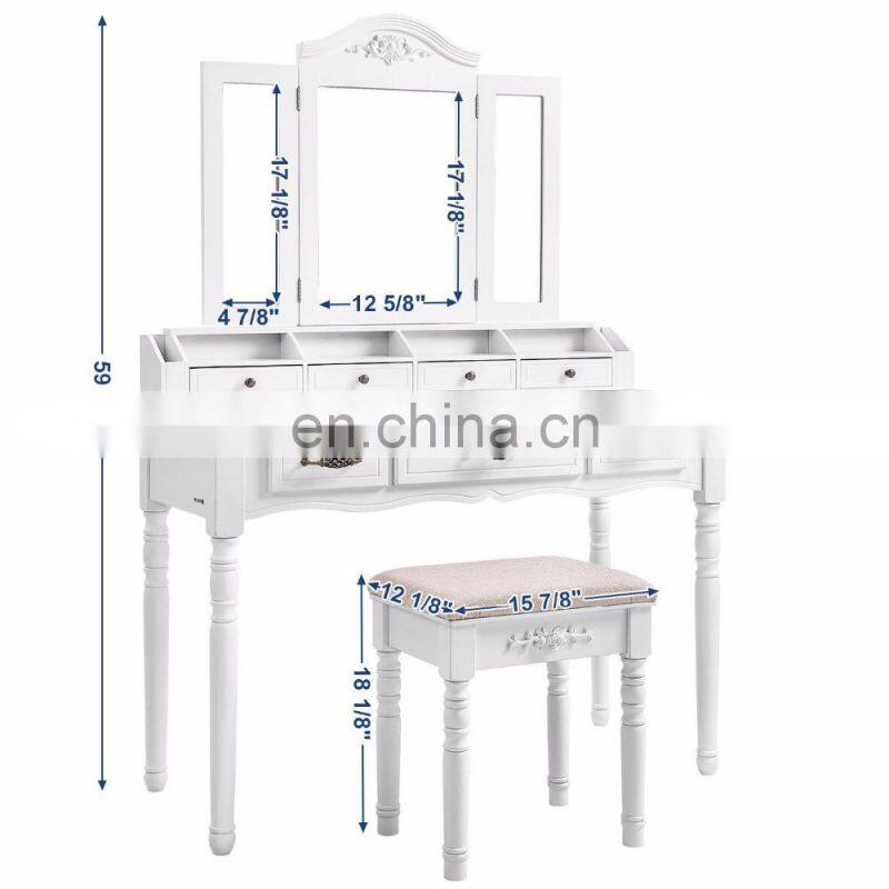 Three Mirrored Simple Dressing Table 7 Drawers 6 Organizers dresser makeup table