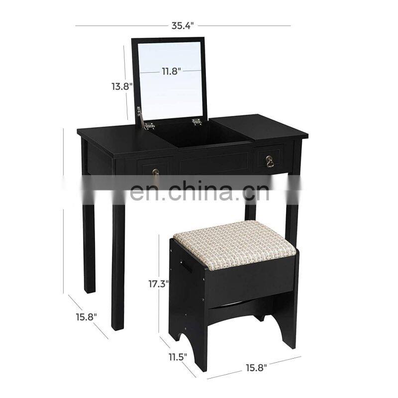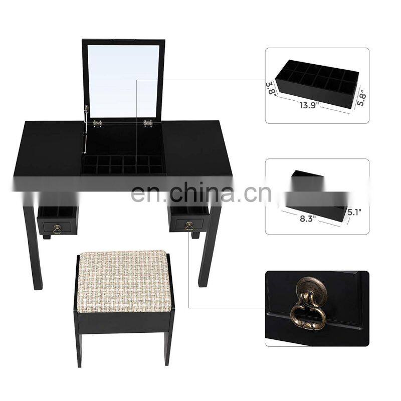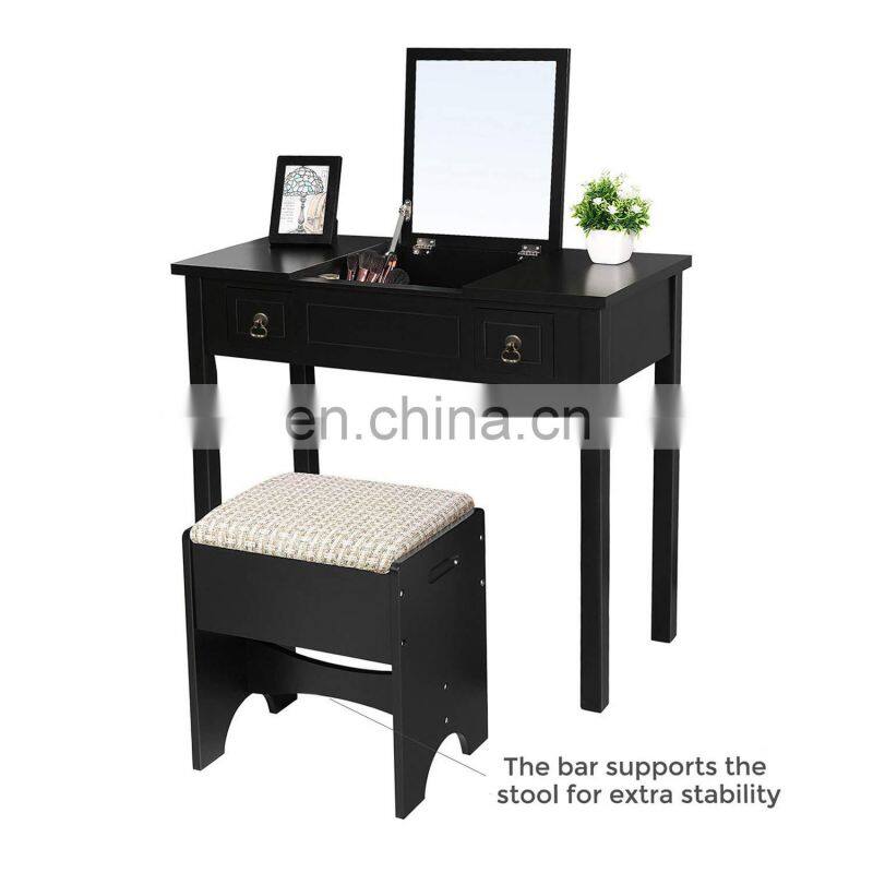 Vanity Makeup Table Wood Stool Mirrored Dressing Table With Drawers