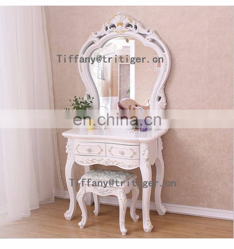 European Style Girl White Dressing Table Wooden Bedroom Dresser