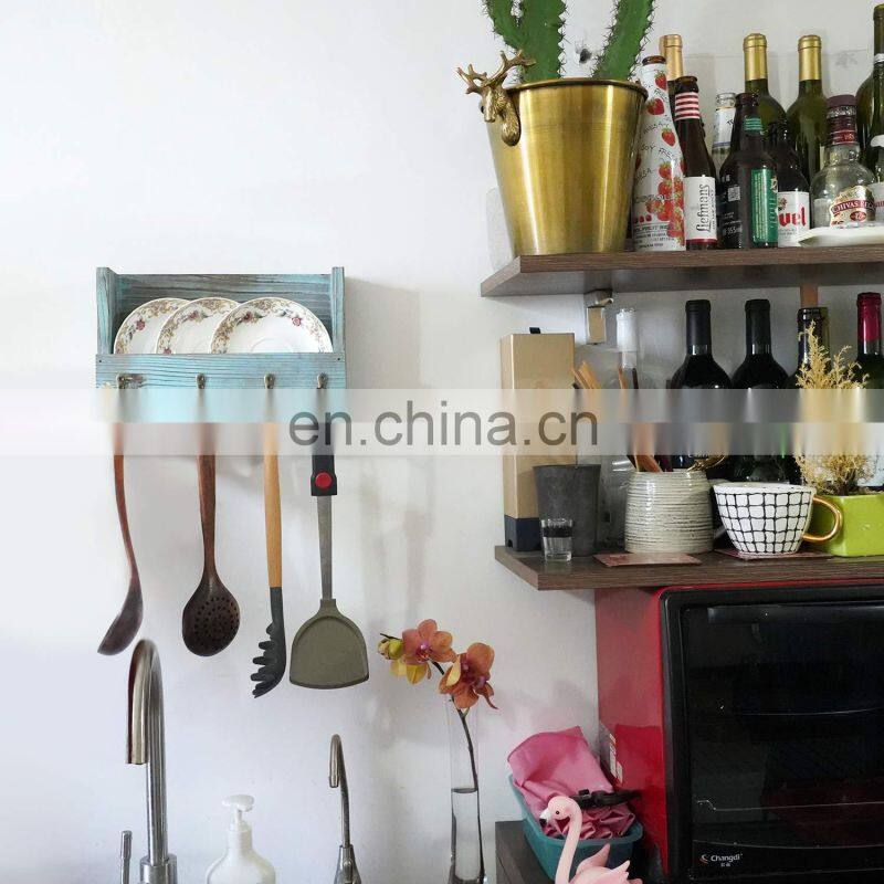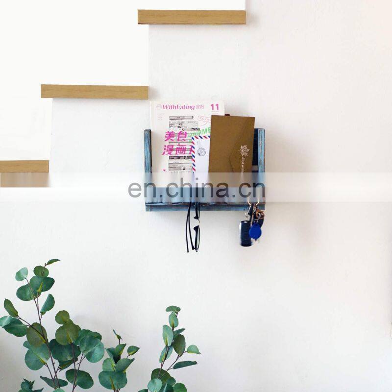 Wall Mount Mail Holder Wood Rustic Key Envelope Organizer with 4 Hooks for Entryway