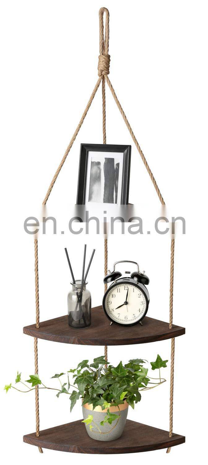 - ✔ Vintage Hanging Corner Shelves: Designed with natural wood with twisted jute ropes, it looks simple and modern. Dark brown on its surface makes it in retro feeling, prefect as home decoration. Hanging in living room, bedroom, dinning room, bathroom, kitchen, or any corner wall. Decorative props are not included in this item!