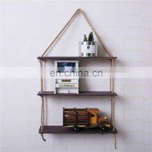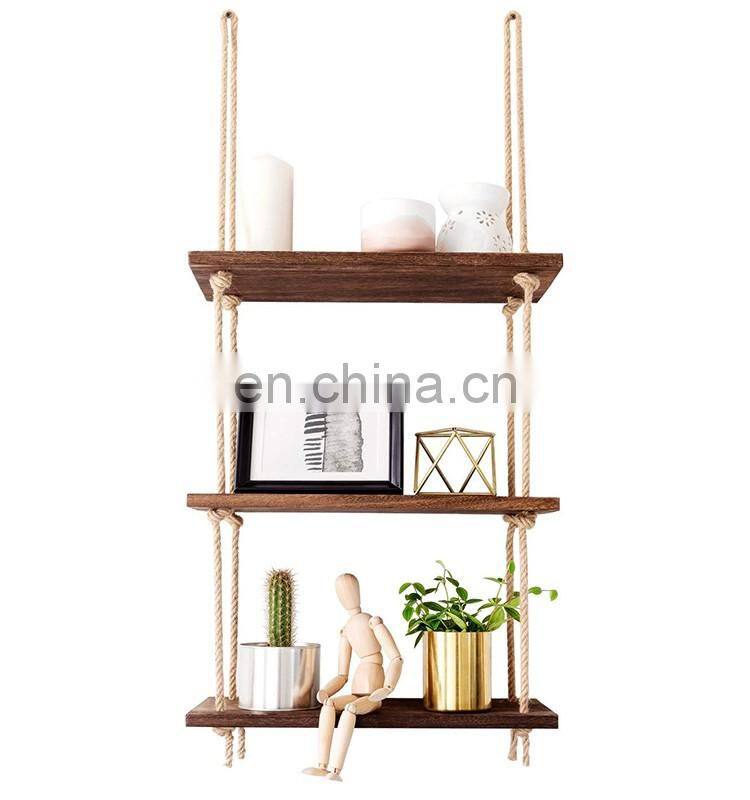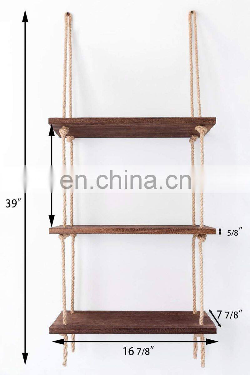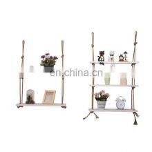 Home > Products > Wall Floating Shelf > Perfect Wall Swing Storage Shelves Jute Rope Organizer Rack 3 Tier