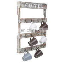 Hook Rustic Wall-Mounted Wood Coffee Mug Holder, Kitchen Storage Rack, Brown
