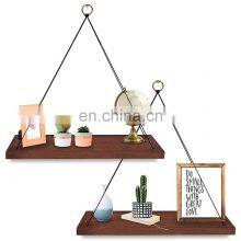 Wall Floating Rack Rustic Hanging Swing Rope Shelves Wood Display Shelf