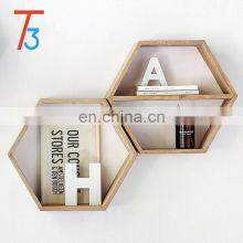 Home Decoration Items Wooden Hexagon Cube Wall Shelf