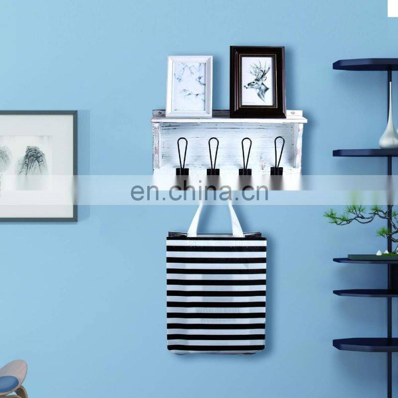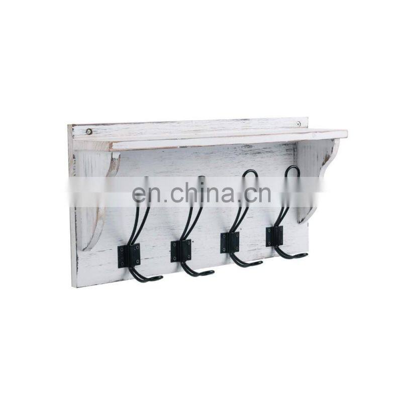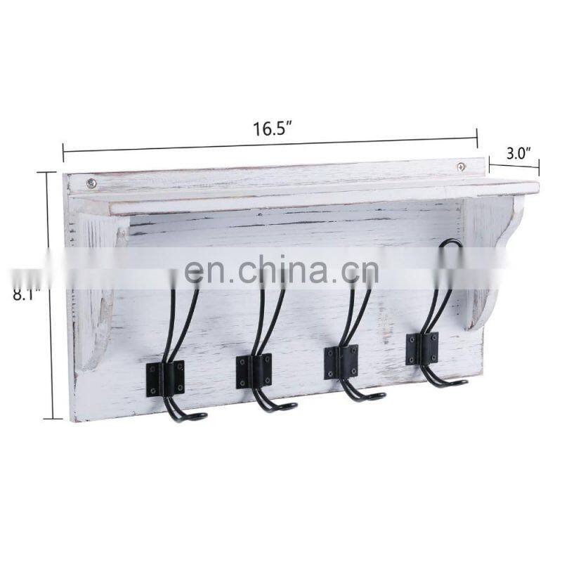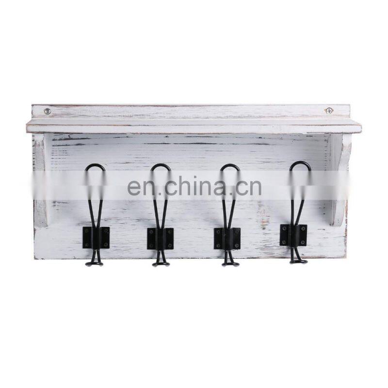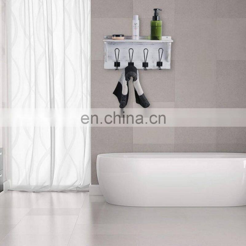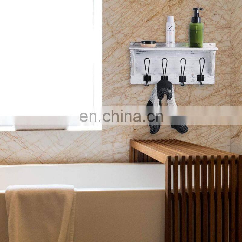 Stone Rustic Coat Rack Shelf Hanging Entryway Shelf with 4 Hooks