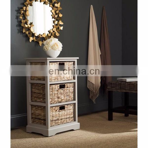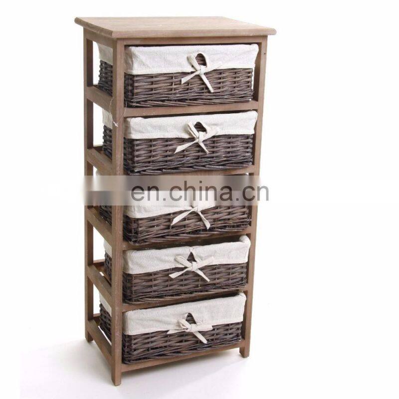 Home Wooden Frame Wicker basket Drawer Storage Unit Cabinet Cupboards Organizer