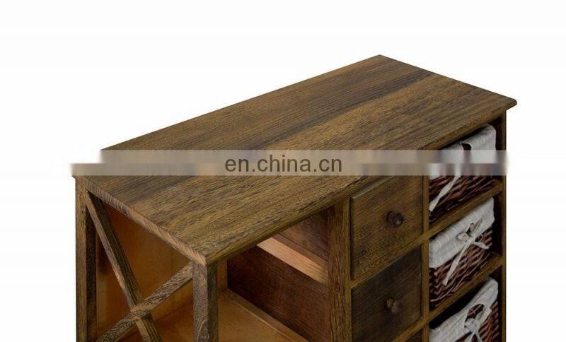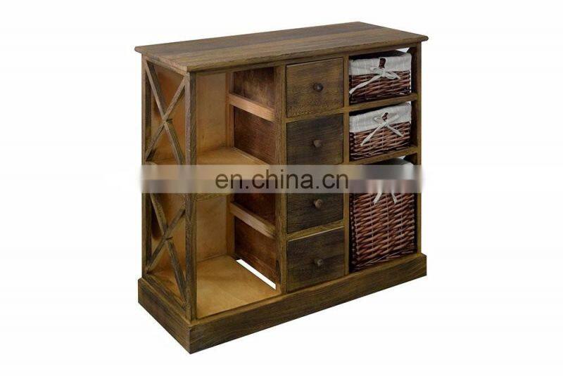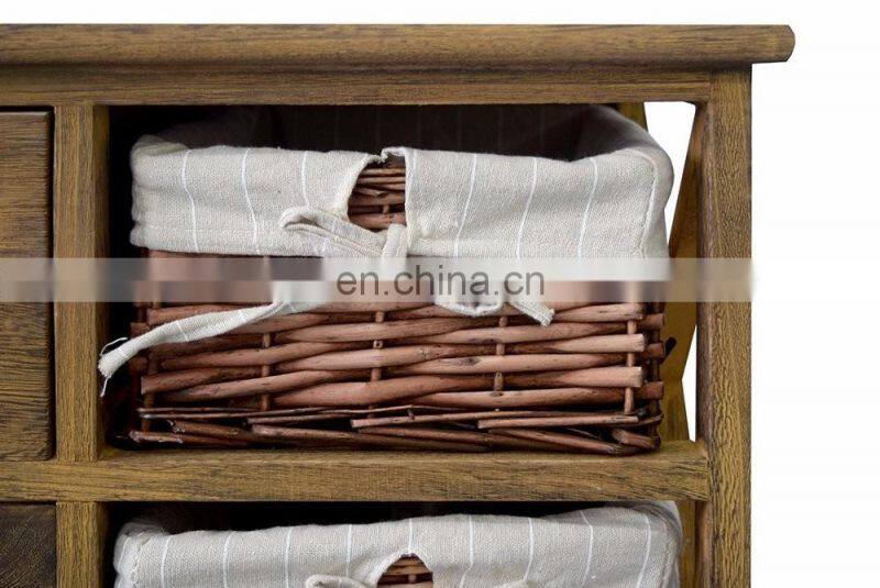 Sideboard Cupboard 4 Drawers 2 Shelves 3 Baskets Wicker Wood Fabric Brown Country Style Kitchen Bedroom