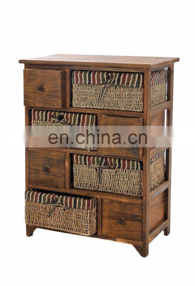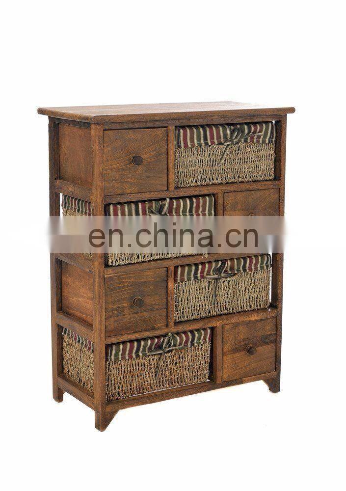 WICKER CHEST DRAWER BASKET MAIZE BEDSIDE CABINET RETRO STORAGE UNIT CUPBOARD