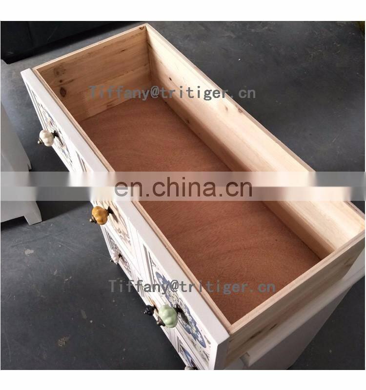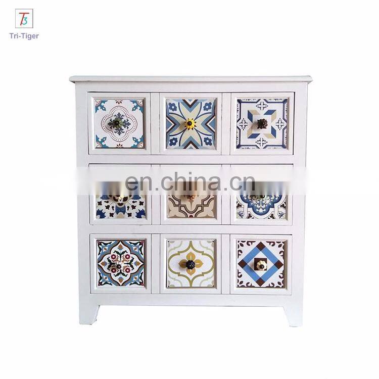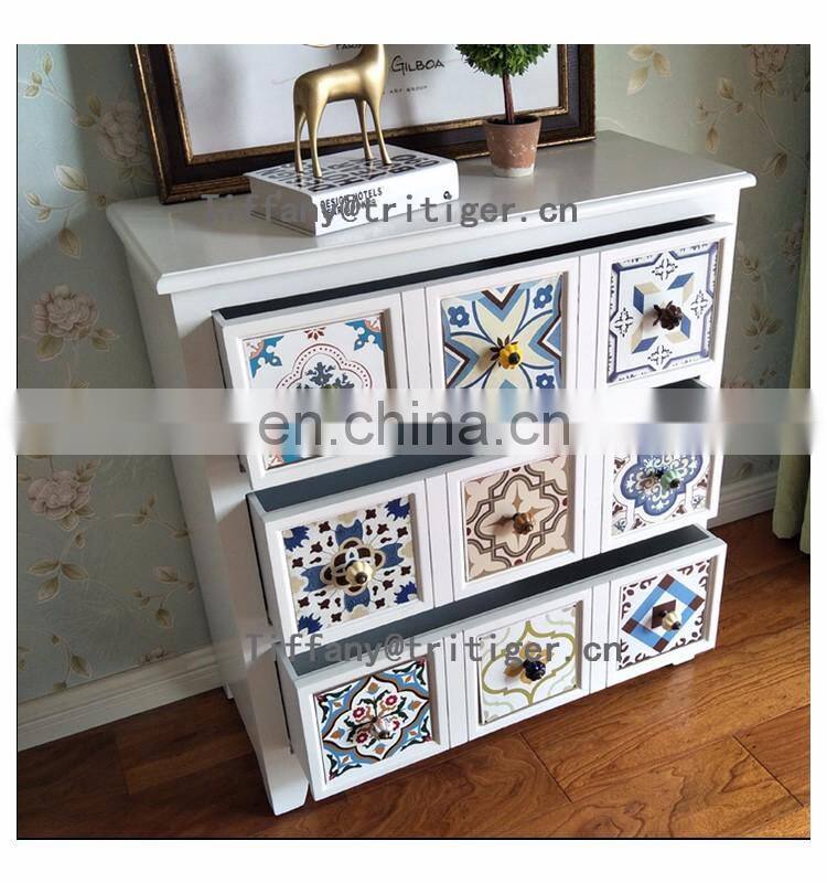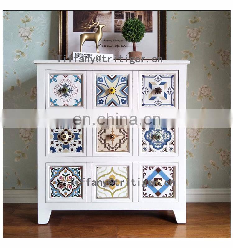- America Vintage Style Wood Storage Cabinet Chest Drawers Antique Colorful Design