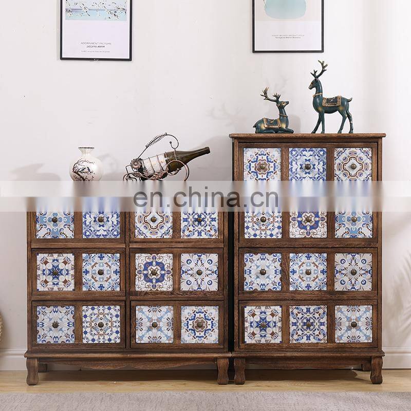 French Antique Colorful Solid Wood Furniture Wooden Multi Drawers Cabinet With 9 Drawers
