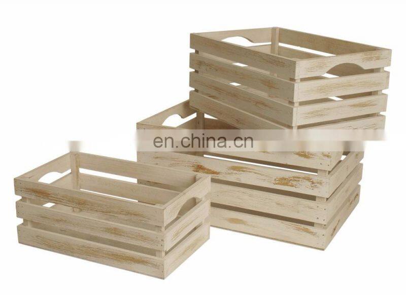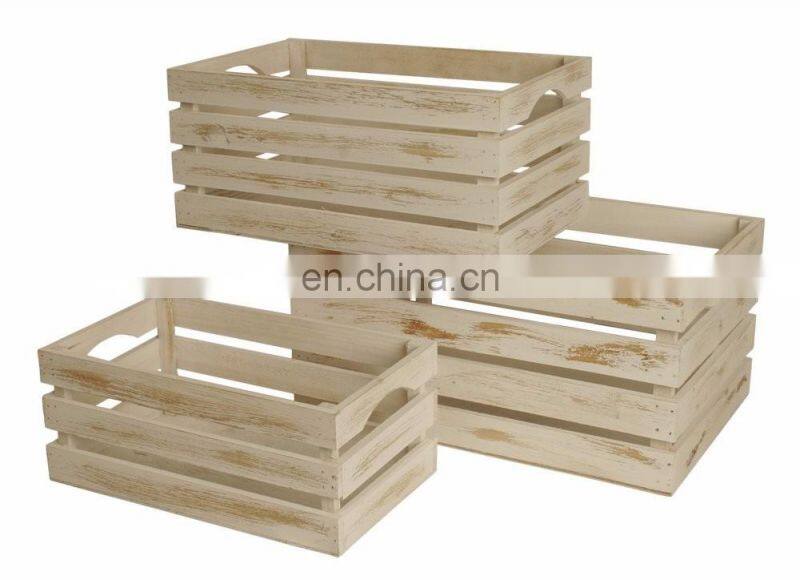 Set of 3 distressed wood crates with whitewash finish
