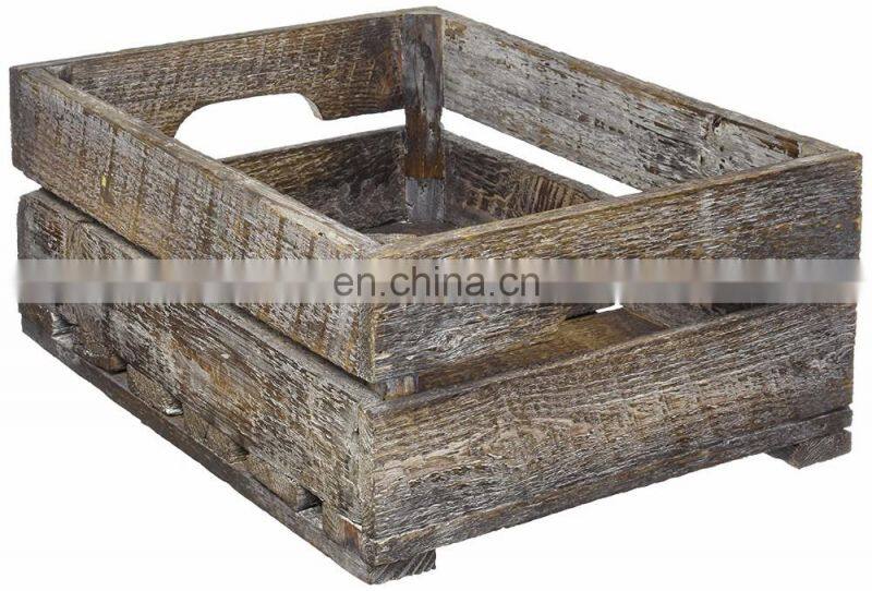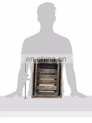 Set of 2 Country Rustic Finish Wood Storage Crate Decorative Tray Carrier Boxes w Handles