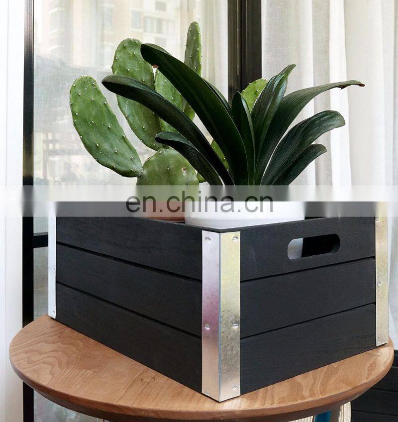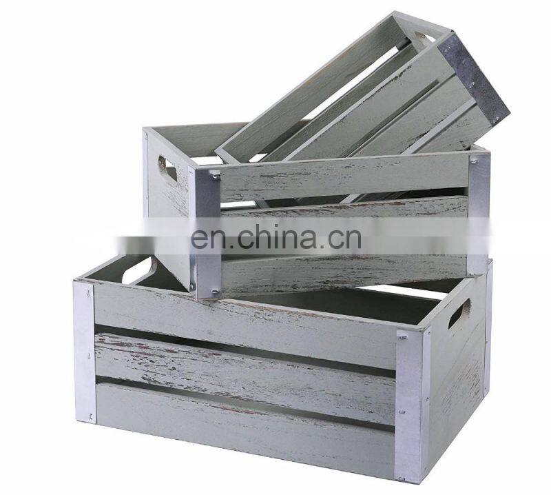Decorative Storage Wooden Crates with Metal Trims (Set of 3, Light Green) | Perfect for Floral Arrangements Gardening Wedding Vintage Country Chic Rustic Style