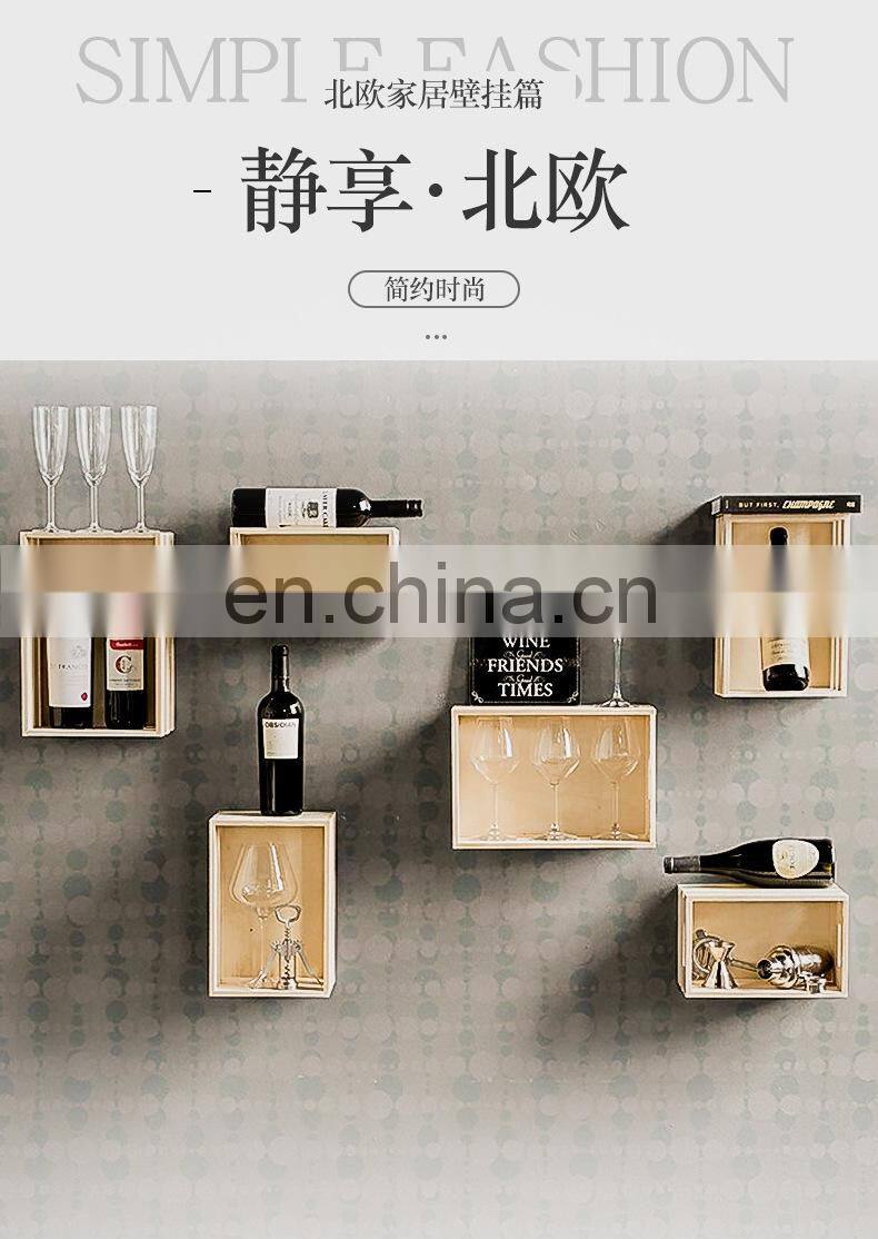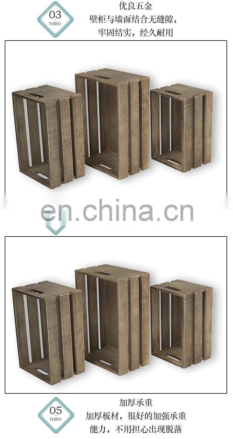 Rustic Walnut Wine Rack Storage Baskets Wall Mount Wooden Crates