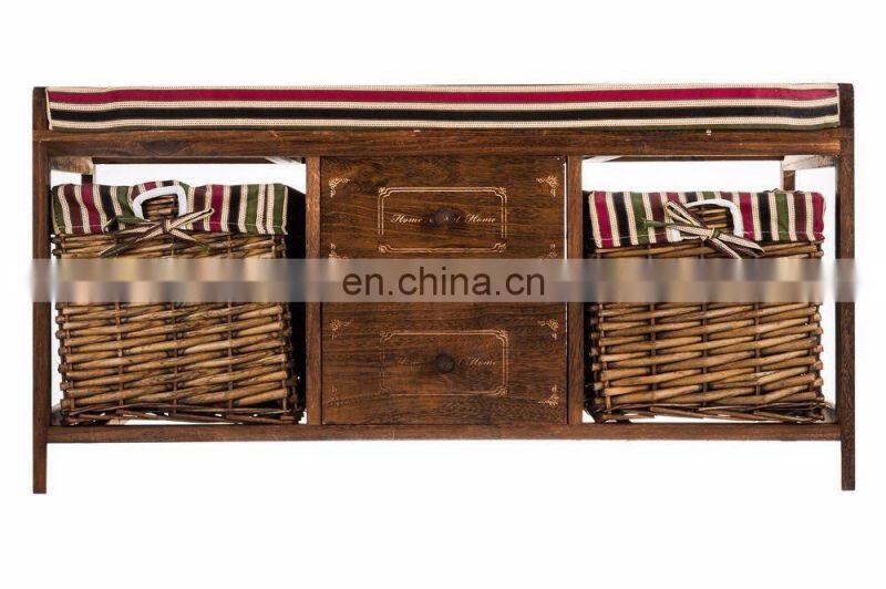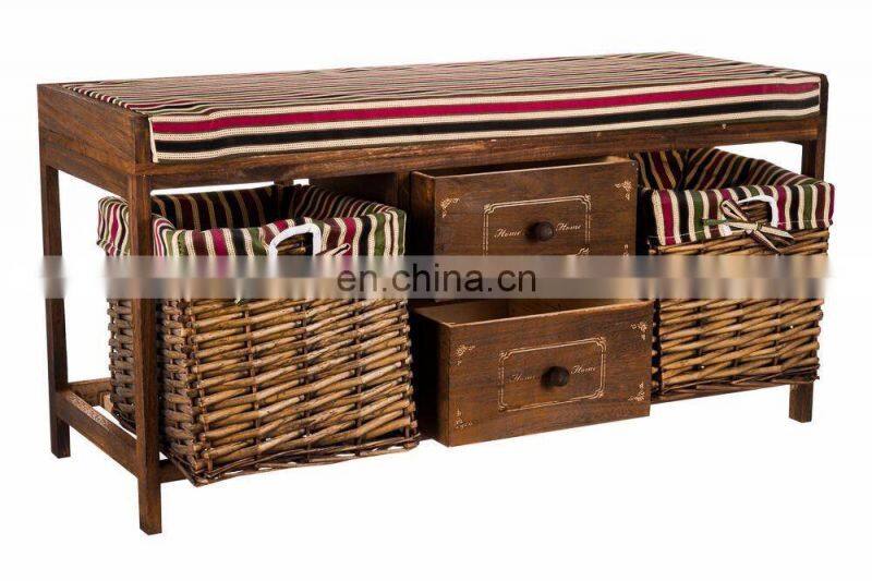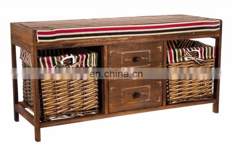 WOOD WICKER SEAT DRAWER STORAGE CABINET CUPBOARD HALLWAY FURNITURE SHOE RACK