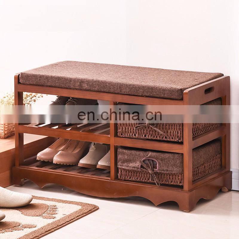 Country House Bench Design Shoe Rack in White with 2 Drawer Storage Cabinet Unit