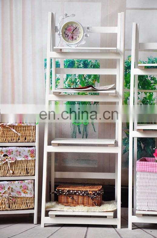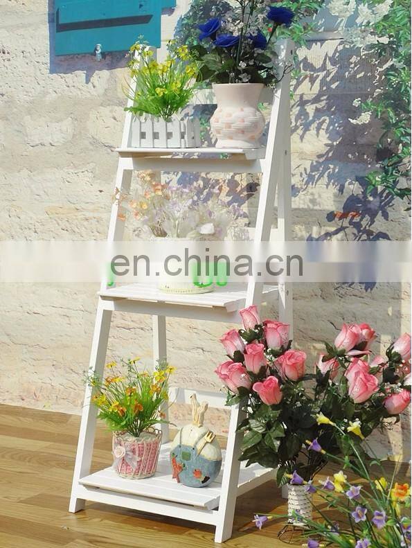 Wholesale White Wash Wood Ladder Rack Display Folding Stand Shelf for Plant Flowers