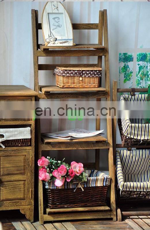 Shabby Chic Wicker Baskets 4 Tier Ladder Shelf Display Stand Storage Shelves