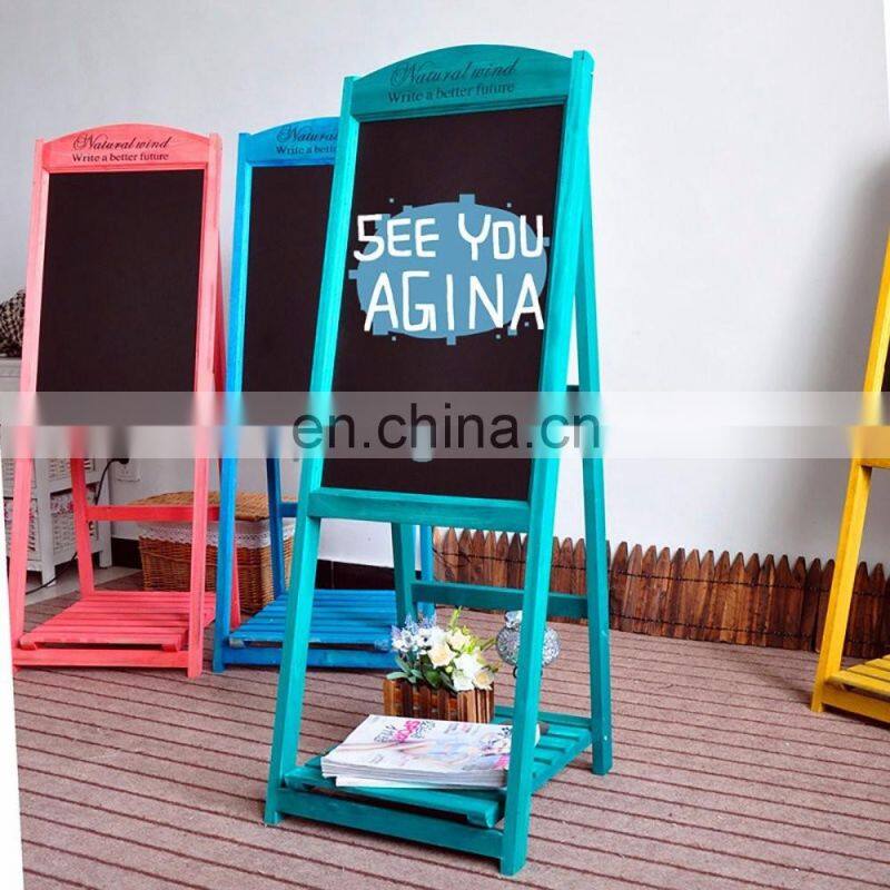 Indoor Wooden Stand Chalkboard Easel With 3 Display Shelves