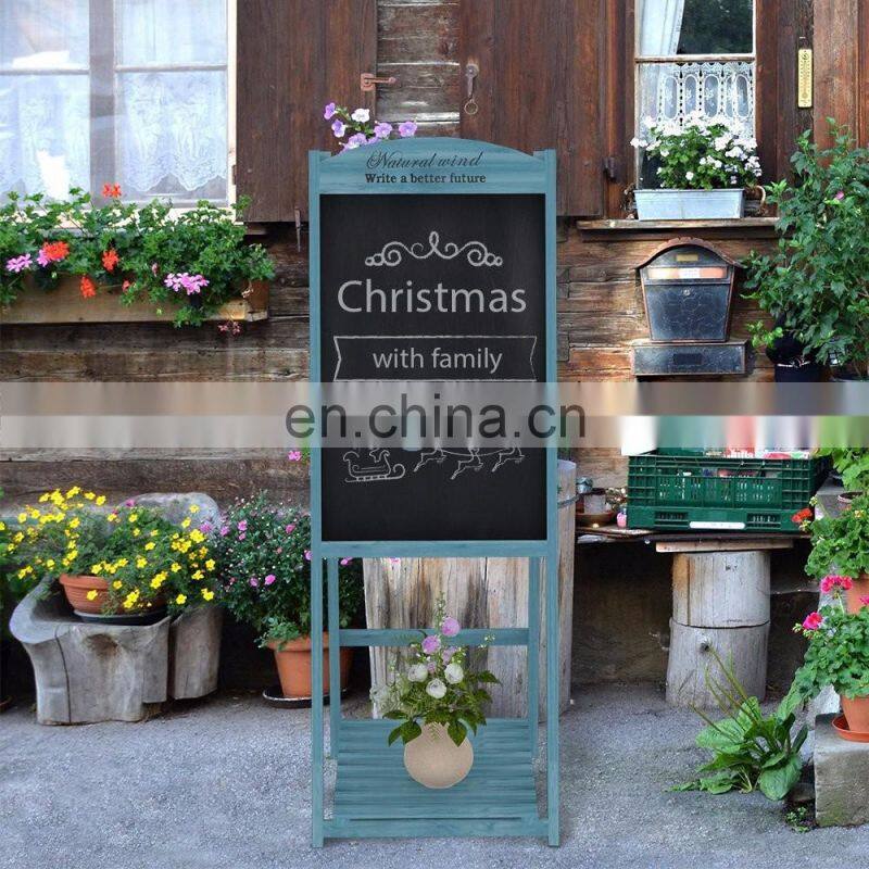 Garden Wooden Flower Stand Chalkboard Easel With 3 Display Shelves