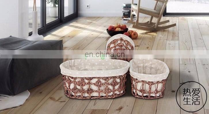 Hand-woven Wicker Willow Storage Baskets Nesting Organizer w/ Lining